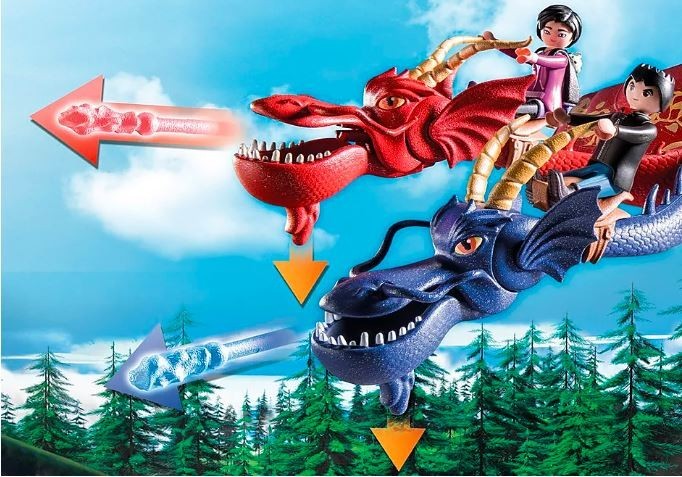 Jun drakonas Wu & Wei yra kinų įkvėptas drakonas su dviem asmenybėmis - viena agresyvi, o kita rami. Jie nuolat stumia vienas kitą vadovauti. PLAYMOBIL drakonas Wu & Wei turi judančias kojas, galvas ir kaklus. Dideli sparnai gali būti sukami visomis kryptimis. Jun ir Eugene gali sėdėti ant drakono su sėdynėmis. Iš kiekvieno drakono pažasties gali būti šaudomas ledinis strėlė. Norint įkelti strėlę, burna atidaroma nuleidžiant smakro juostą ir vėl uždaroma. Strėlės šūvį galima taip pat aktyvuoti traukiant smakro juostą.