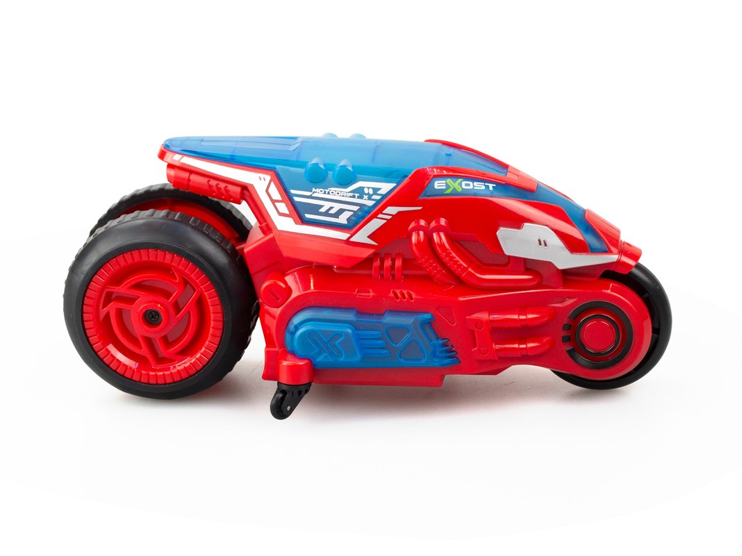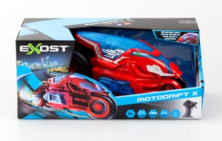 „Exost“ – tai modernus ir stilingas prekių ženklas, pasižymintis aukšta kokybe, išskirtinėmis technologijomis ir įdomiomis modelių savybėmis. Staigūs posūkiai, pavojingi manevrai ir šoninis slydimas – kiekvieno lenktynių entuziasto svajonė. Dabar visa tai įmanoma su radijo bangomis valdomu motociklu MOTORDRIFT! Atlik kvapą gniaužiančius triukus ir perkelk vairavimą į kitą lygį!