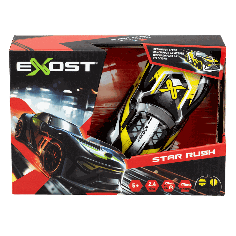 Pristatome SILVERLIT EXOST „Star Rush“ – kibernetinio dizaino įkvėptą greitaeigį automobilį! Šis radijo bangomis valdomas automobilis, pasižymintis elegantišku miesto automobilio dizainu, yra pasiruošęs lenktyniauti. Patirk valdymo malonumą naudodamas 2,4 GHz technologiją, suteikiančią tau tikslų valdymą ir reakciją. Lengva konstrukcija užtikrina maksimalų galios ir svorio santykį, todėl galima pasiekti įspūdingą iki 8 km/val. greitį. Nuotolinio valdymo pultas veikia iki 25 metrų atstumu. Išlaisvink lenktynių jaudulį kaip niekada anksčiau. Pasiruošk įžiebti greičio aistrą su SILVERLIT EXOST „Star Rush“ automobiliu!