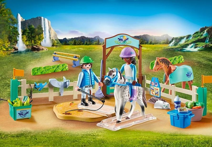 Pasiruoškite dar inuolatnesniems jojimo nuotykiams Vandens krioklio rančoje su modernia PLAYMOBIL jojimo arena!