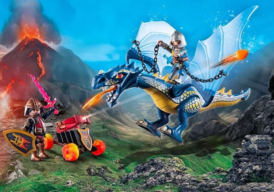 Pasinerkite į nuotykį su jaudinančiu PLAYMOBIL Novelmore Drąsaus Drakono rinkiniu. Rinkinys apima dvi PLAYMOBIL figūras, drakoną ir daugybę puikių aksesuarų.