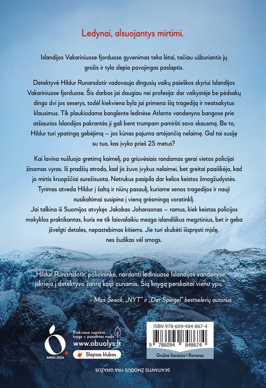 Tamsi ir hipnotizuojanti kriminalinė istorija iš Islandijos Vakarinių fjordų, kur sniegas slepia ne tik ledą – bet ir mirtį. Pasinerkite į tamsų Islandijos fjordų pasaulį – atraskite „Fjordo paslaptį“ šiandien.