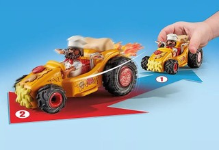 Pasiruoškite, pasiruoškite... Picos vyrukas be jokių dvejonių pajudėjo su savo šviežiai iškeistu go-kartu, turinčiu traukimo motorą. Jis dalyvauja lenktynėse, kurios patenkins bet kokį adrenalino troškimą. Įvairūs sūriai, skanus saliamis ir įkaitęs variklis tikrai sujaudins žiūrovus. Greitos lenktynės, važiavimas aplink kliūtis ir beprotiški triukai – PLAYMOBIL Funstars pasiruošę veikti!