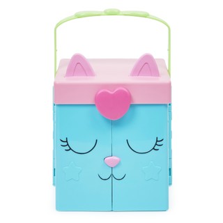 Šis rinkinys – tai nešiojama lėlytės Gabby spinta! Spinta išsiskleidžia į 4 skirtingus blokus, kurie tampa puikiomis fotosesijų erdvėmis! Šį rinkinį privalo turėti kiekvienas serialo „Gabby’s Dollhouse“ fanas! Užsuk į kambarį su kosmetiniu staliuku ir veidrodžiu, kuriame yra trys stilingi perukai ir du jų stoveliai, padaryk lėlytei šukuoseną ir makiažą, o tada skubėk į kambarį su spinta, kur yra trys pakabos ir stalčiukai su dviem skirtingais Gabby drabužių deriniais. Išrinkęs Gabby drabužius, šok ant besisukančio podiumo ir leisk jai demonstruoti madas. Nepamiršk išpakuoti siuntos ir pažiūrėti, koks siurprizas laukia šįkart – visai kaip Gabby daro seriale! Kai lėlytė bus pasiruošusi fotosesijai, ji gali pasinaudoti plastikinėmis kopėčiomis ir užlipti į fotostudiją, kurioje laukia net 4 skirtingi fonai įspūdingoms nuotraukoms.