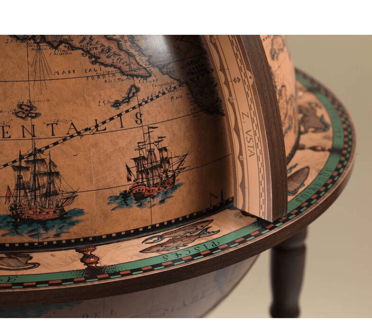 Žemėlapis, pilnas geografinių nuorodų, yra tiksli XVIII amžiaus reprodukcija. Gaublio viduje yra dekoratyviniai ir mitologiniai motyvai, įkvėpti vokiečių–olandų kartografo Andreaso Cellariuso „Atlas Coelestis seu Harmonia Macrocosmica“.