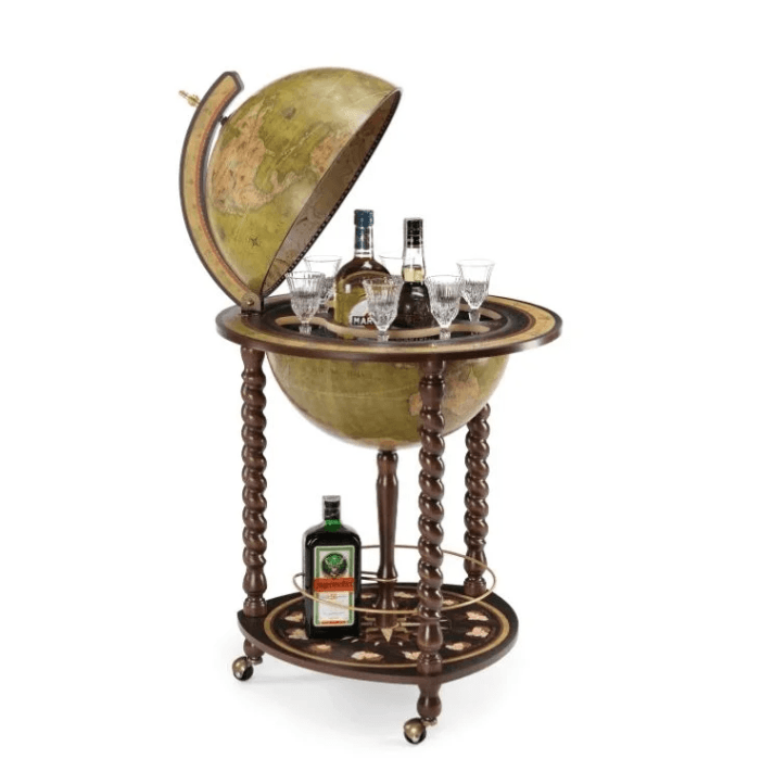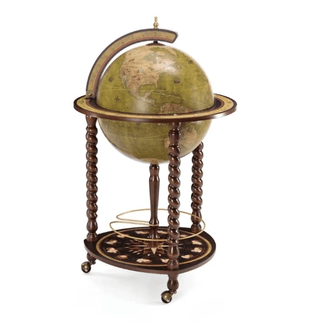 Gaublys–baras EXPLORA Olive Green „Zoffoli“. 40 cm skersmens, 93 cm aukščio. Rankų darbo, Italija. Balta kaip Grenlandijos ledas, žalia kaip Amazonės atogrąžų miškai ir raudona kaip išdžiūvusi Didžiojo kanjono žemė. „Explora“ gaublys – tai kelionė per svajonių vietas ir atmosferą. Galite rankomis paliesti atokias vietas ir įsivaizduoti, kad ten esate: užmerkite akis, pasinerkite į jus supančius garsus ir kvapus, į tolimų kraštų ir kultūrų skonius ir leiskite sau būti nuneštam... Bendri matm…