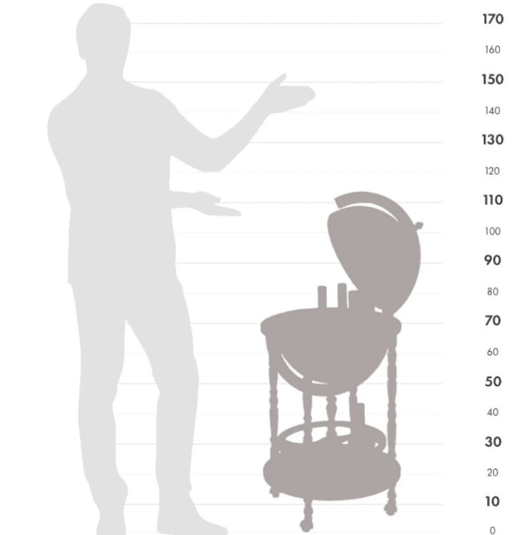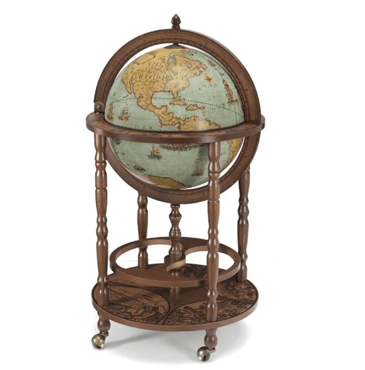 Elegantiškas, ant grindų statomas gaublys–baras „Minerva“ turi vidinį skyrių, kuriame telpa iki 9 stiklinių ir 2 arba 3 buteliai. Papildomus butelius galima laikyti ant apatinio medinio pagrindo, gražiai dekoruoto natūraliomis vandens pagrindo spalvomis. Žemėlapis yra tiksli XVI amžiaus kartografijos reprodukcija. Ratukų dėka galite lengvai jį perkelti.