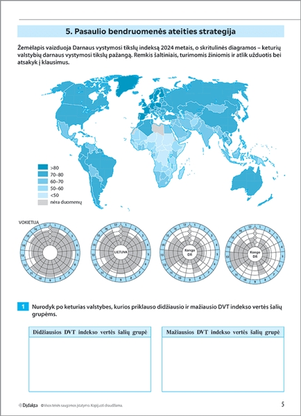 Užduotys pritaikytos skirtingų gebėjimų mokiniams: yra ir trumpų, konkrečių klausimų, ir sudėtingesnių užduočių, skatinančių mąstyti, analizuoti bei vertinti. Leidinys taip pat padeda sistemingai ruoštis geografijos brandos egzaminui.