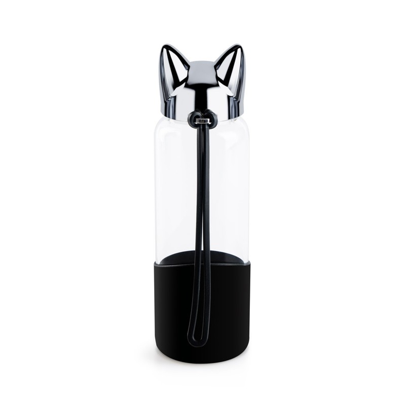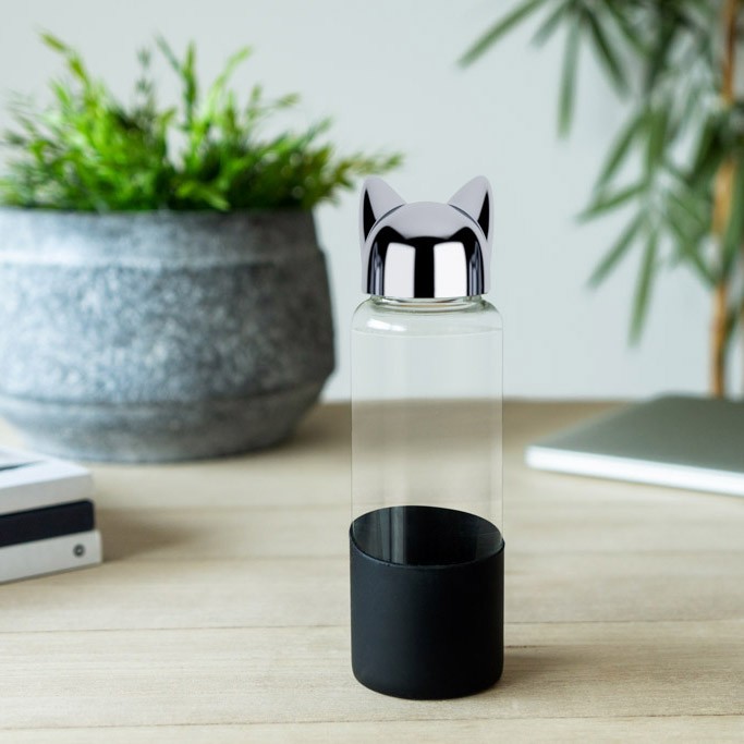 Balvi kelioninė gertuvė „Cat“ su mielomis katės ausytėmis, juodos spalvos, 350 ml.