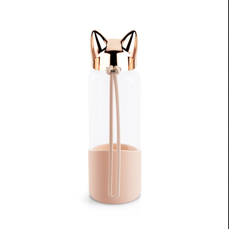 Balvi kelioninė gertuvė „Cat“ su mielomis katės ausytėmis, rožinio aukso spalvos, 350 ml.