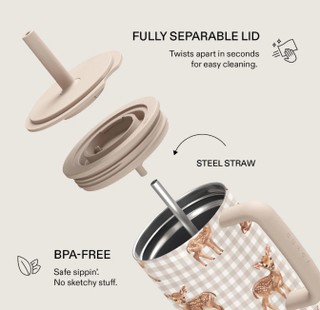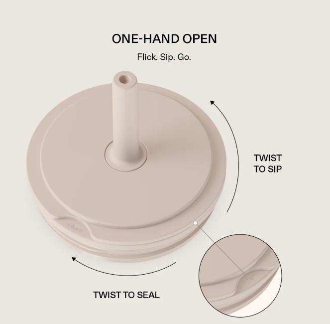 • Nepralaidus dangtelis su šiaudeliu: sandariai užsirakina, neišsilieja apvertus ar išmetus. Jūsų gėrimas liks gertuvėje.