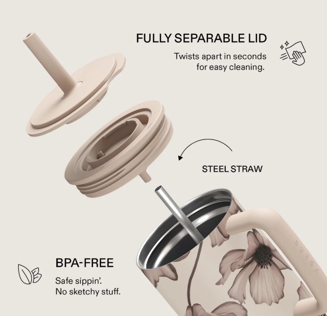 Ši 1,2L talpos BURGA gertuvė išlaiko jūsų gėrimą karštą 12 valandų, šaltą visą dieną ir yra visiškai nepralaidi dėl sandaraus dangtelio su šiaudeliu, kuris užsirakina. Ji tinka jūsų automobilio puodelių laikikliui, turi patogią rankeną ir yra įvairių spalvų, kurias galite derinti prie savo aprangos.