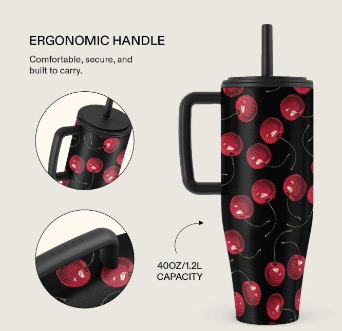 Ši 1,2L talpos BURGA gertuvė išlaiko jūsų gėrimą karštą 12 valandų, šaltą visą dieną ir yra visiškai nepralaidi dėl sandaraus dangtelio su šiaudeliu, kuris užsirakina. Ji tinka jūsų automobilio puodelių laikikliui, turi patogią rankeną ir yra įvairių spalvų, kurias galite derinti prie savo aprangos.