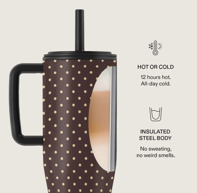 • Dvigubos sienelės izoliacija: gėrimai išlieka karšti iki 12 valandų, o šalti – dar ilgiau.
