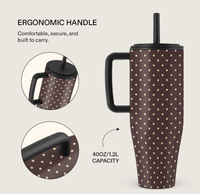 Ši 1,2L talpos BURGA gertuvė išlaiko jūsų gėrimą karštą 12 valandų, šaltą visą dieną ir yra visiškai nepralaidi dėl sandaraus dangtelio su šiaudeliu, kuris užsirakina. Ji tinka jūsų automobilio puodelių laikikliui, turi patogią rankeną ir yra įvairių spalvų, kurias galite derinti prie savo aprangos.Ar tai būtų kava, vanduo ar ledinė matcha su avižų pienu – ši gertuvė tinkama viskam, lengvai valoma ir atrodo velniškai gerai. Pagrindinės savybės: 1,2 l talpa: telpa daugiau, todėl rečiau reiki…