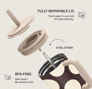 • Medžiagos: 304L nerūdijantis plienas (korpusas ir šiaudelis), PP + silikonas be BPA (dangtelis), PP (rankena).