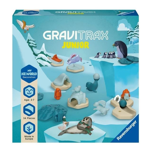 Ledinės nuotykių praplėtimo komplektas yra papildymas bet kuriam GraviTrax Junior starto rinkiniui. Jums yra prieinami daugiau nei trisdešimt skirtingų elementų. Sukurkite trasą, kuri veda per sušalusias, Arkties teritorijas! Plastikinis kamuoliukas rieda po iglua ir ledo urvu, pakeliui sutinkant linksmus gyvūnus!