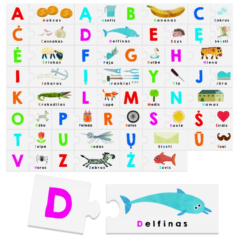 Montessori metodo įkvėptas žaidimas, skirtas mokytis skaityti nuo trijų metų. Smagus žaidimas, kurį žaisdami vaikai liečia raides, susieja jas su žodžiais ir detalių-dėlionių dėka mokosi abėcėlės bei sugeba atskirti ilgesnius ir trumpesnius žodžius. Žaidimas gali būti naudojamas kaip efektyvi priemonė mokant vaikus skaityti ir rašyti, jis taip pat lavina lytėjimą bei rankų motoriką.