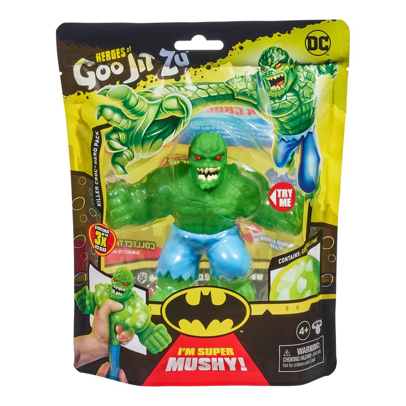 DC ir „Goo Jit Zu“ herojai suvienijo jėgas ir yra pasiruošę nustebinti savo tamprumu, minkštumu bei išskirtinio gleivių užpildo pripildytu kūnu ir nugalėti net rimčiausius priešininkus! Kiekvienas DC herojus turi išskirtinį įvairių tekstūrų gleivių pripildytą kūną ir dar daugiau supergalių! „Goo Jit Zu“ herojai – tai smagūs žaislai, nepaliekantys netvarkos. Visos figūrėlės išsitempia iki 3 kartų savo pačių dydžio ir yra itin patvarios! Ištempk ir suspausk savo herojų, ir jis visada grįš atgal į savo pradinę formą! Atrask naują žaidimo būdą ir išgelbėk pasaulį su šauniais DC herojais iš „Goo Jit Zu“!