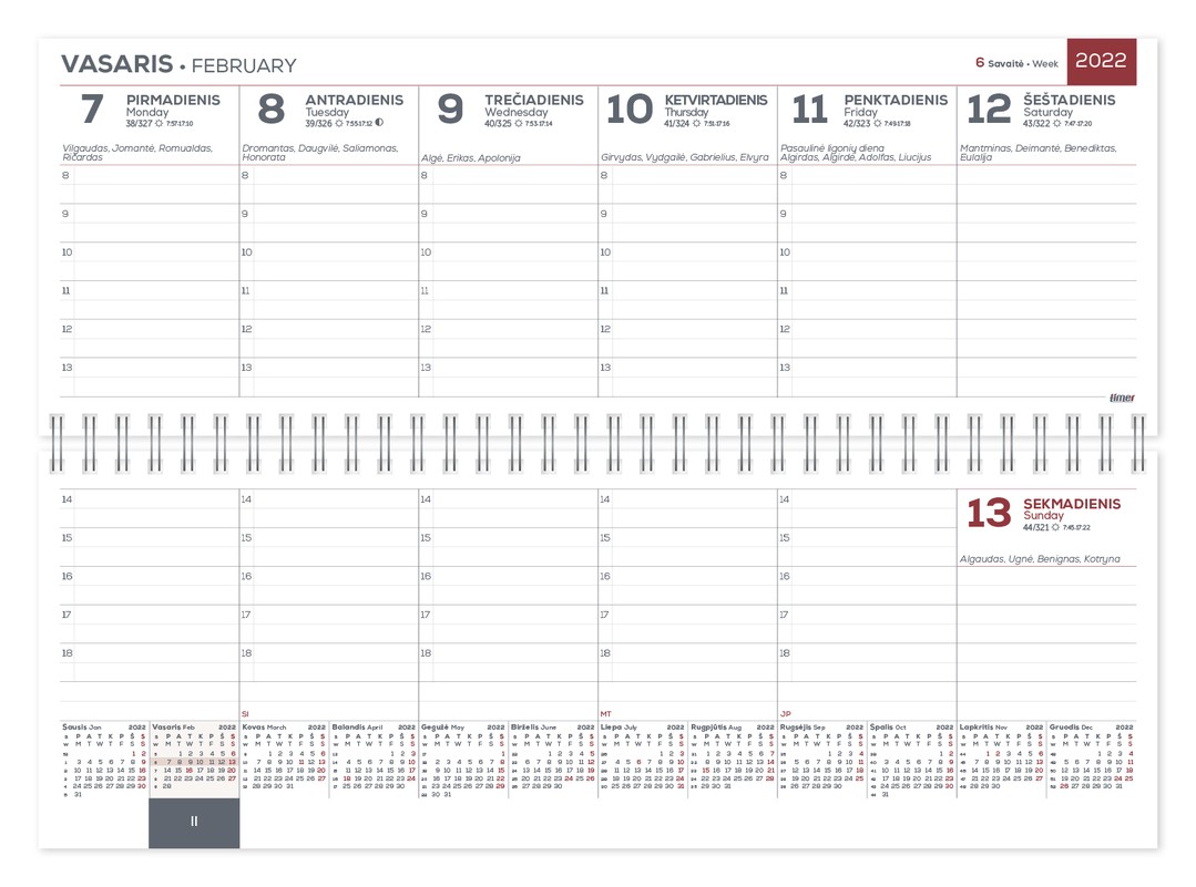 • Horizontalus stalinis kalendorius, skirtas savaitės darbų bei susitikimų planavimui.