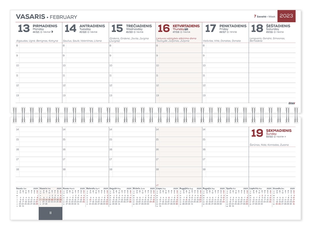 Horizontalus stalinis kalendorius, skirtas detaliam darbų ir susitikimų planavimui.