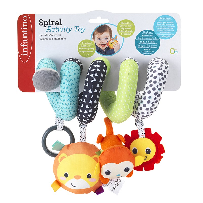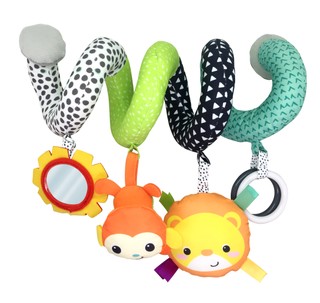 Minkšta spiralė su 4 barškančiais ir besisupančiais žaisliukais – puikus mažylio draugas bet kurioje kelionėje. Spiralę lengva užkabinti ant automobilinės kėdutės bei daugumos vežimėlių.