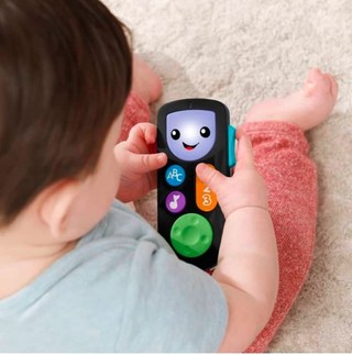 Padėkite mokytis per žaidimą su unikaliu aktyvavimo žaislu „Mokykis ir juokis“ edukaciniu pulteliu! iš Fisher-Price. Šis nuotolinio valdymo pultelis atrodo beveik taip pat, kaip tėvų naudojamas, tačiau yra puikiai pritaikytas mažoms rankoms, kad jas būtų galima laikyti, paspausti, pasigarsinti ir perjungti pagal norą. Kai mažylis paspaudžia ABC mygtuką, 123 ir muzikos mygtuką, jis išgirs daugiau nei 20 dainų aktyvavimų, garsų ir teiginių apie skaičius, raides ir spalvas, o ekrane pasirodys draugiška apšviesta paveikslėlis. Papildomi aktyvavimo elementai apima perjungimo mygtuką, sukimo ratuką ir krypties mygtuką, kurie padeda lavinti judrumą (ir suteikia puikią pramogą proceso metu).