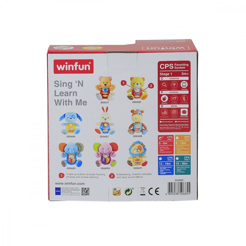 Spalvingi šviesos efektai, įdomūs garsai ir frazės lenkų kalba leis kūdikiui kūrybiškai žaisti. Mielas žaislas taps gidų per džiugias melodijas, skatinančias eksperimentuoti. Ant žaislo pilvo yra trys spalvingi funkcijų mygtukai, kurie įjungia skirtingas melodijas ir moko vaikus 3 skaičių ir 3 raides. Be to, jis turi minkštą galvą, rankas ir kojas. Pilvas pagamintas iš aukštos kokybės plastiko.