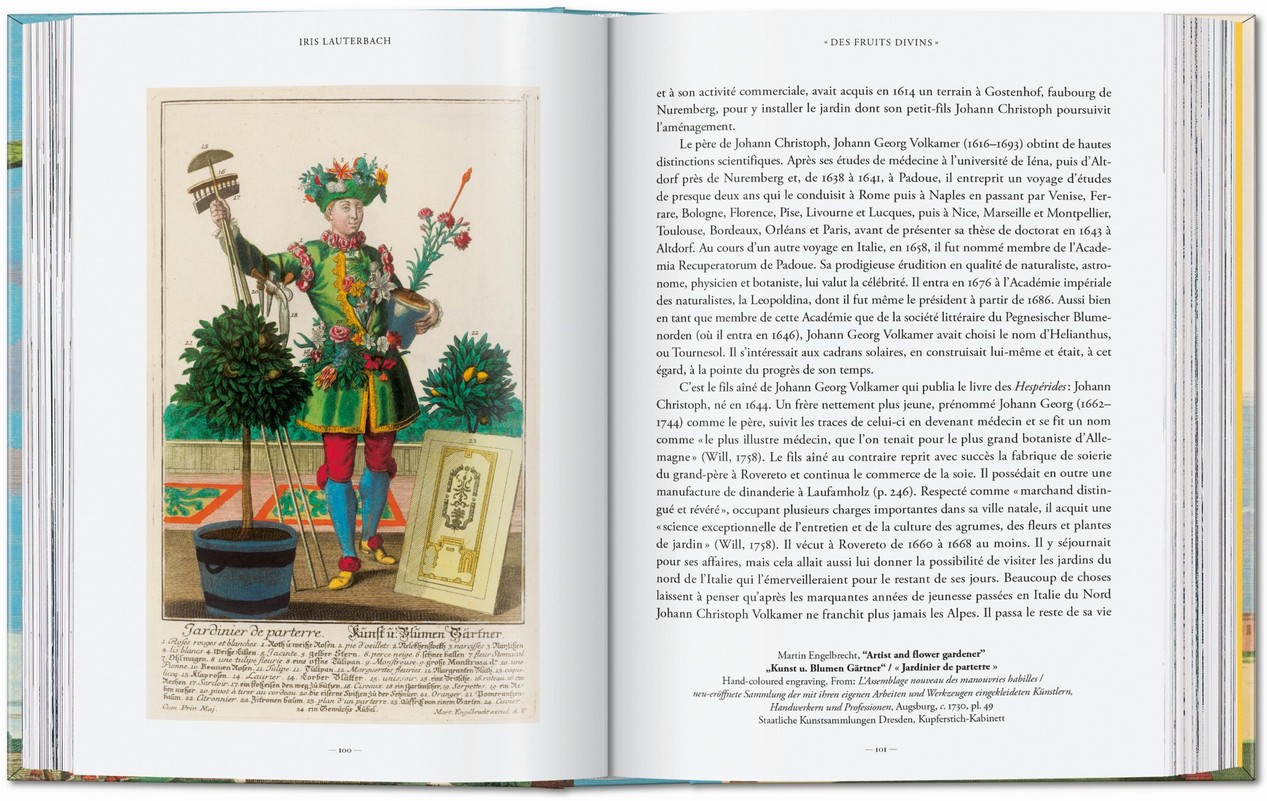 Few colored sets of Volkamer’s work are still in existence today. This publication draws on the two recently discovered hand-colored volumes in the city of Fürth’s municipal archive in Schloss Burgfarrnbach. The reprint also includes 56 later discovered illustrations that Volkamer intended to present in a third volume.
