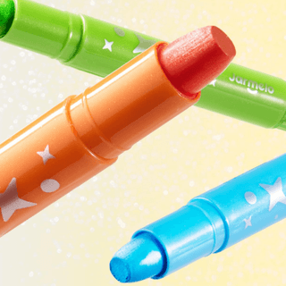 Šios kreidelės pasižymi lengvai nuplaunama formule – spalvos lengvai nusivalo nuo odos, drabužių ar baldų, blizgučiai nepalieka jokių likučių.