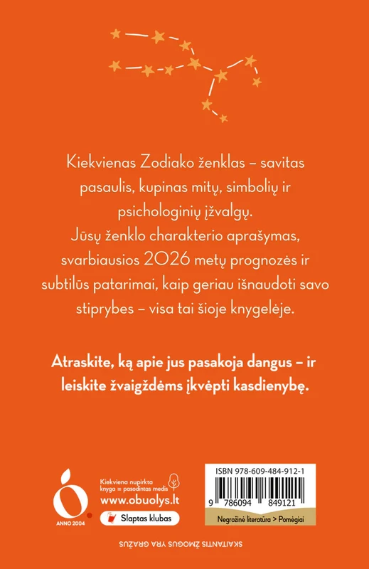 „Horoskopai 2026“ kolekcija – 12 Zodiako ženklų knygelių, atskleidžiančių kiekvieno charakterį, stiprybes ir sėkmės periodus. Atrask savo ženklą arba padovanok artimam žmogui – nes kiekvienas žvaigždynas slepia unikalią istoriją.