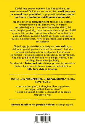 Šioje knygoje neieškoma atsakymo, kas kaltas, o siekiama padėti geriau vienam kitą suprasti. Autorius remiasi psichologinėmis įžvalgomis, kultūriniais skirtumais ir gyvenimiškomis situacijomis, parodydamas, kad dauguma konfliktų kyla ne iš blogos valios, o dėl skirtingų komunikacijos būdų. Svarbiausia: Tatsunari Iota siūlo paprastus ir praktiškus būdus, kaip tuos skirtumus paversti ne kliūtimi, o tiltu tarp dviejų žmonių.