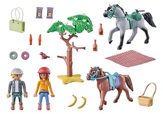 Vandens krioklio ranča, esanti Baltojo kalno papėdėje, yra tikra žirgų rojus. Tiek žmonės, tiek gyvūnai čia jaučiasi kaip namuose. Kartu su savo svečių žirgais Amelia ir Ben išsiruošia jodinėjimo kelionėn į paplūdimį. Žinoma, jie taip pat pagalvojo apie skanų atgaivimą sau ir savo gyvūnų draugams. Puikūs PLAYMOBIL Starter Pack rinkiniai kviečia vaikus tiesiogiai panirti į įvairią PLAYMOBIL pasaulio patirtį. Šie rinkiniai apima žaidimo figūras ir atitinkamus aksesuarus iš populiarių PLAYMOBIL pasaulių, greitai surenkami ir iš karto pasiruošę žaidimui. Gerai aplinkai: žaidimų rinkinys pagamintas iš daugiau nei 80% tvarių medžiagų.