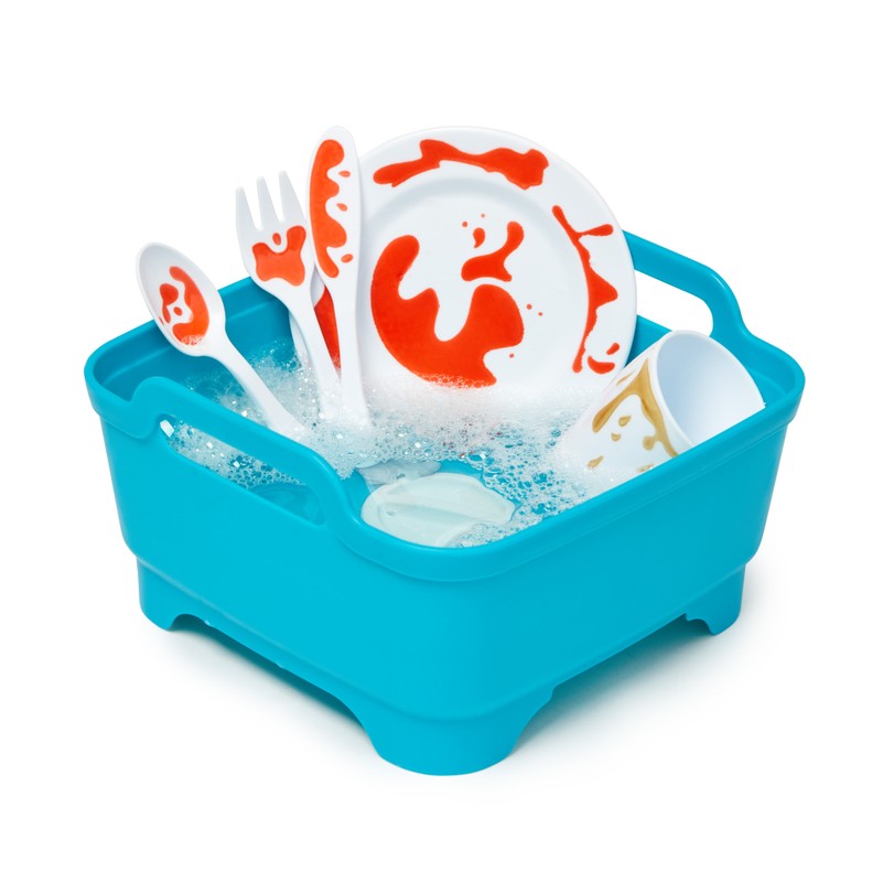 Tikroviškas „Joseph Joseph“ indų plovimo rinkinys smagiems, tikrus namų ruošos darbus primenantiems žaidimams. Rinkinyje yra didelis užkemšamas dubuo, į kurį galima pripilti vandens, šepetėlis, buteliukas indų ploviklio, lėkštė, puodelis, peilis, šakutė ir šaukštas. Išplovus, indai pakeičia spalvą ir iš nešvarių tampa akinančiai spindintys!
