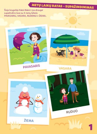Šioje knygelėje mažieji Kakės Makės draugai klijuos lipdukus, spalvins, skaičiuos, ieškos ir lavins pirštukus. Kiekvienas metų laikas čia turi savo istoriją, trumpą pasakojimą ir smagius klausimus, į kuriuos taip įdomu atsakyti. Tai ne tik linksmas laiko praleidimas, bet ir puiki galimybė mokytis per žaidimą, ugdyti smalsumą, vaizduotę bei pažinimo džiaugsmą.