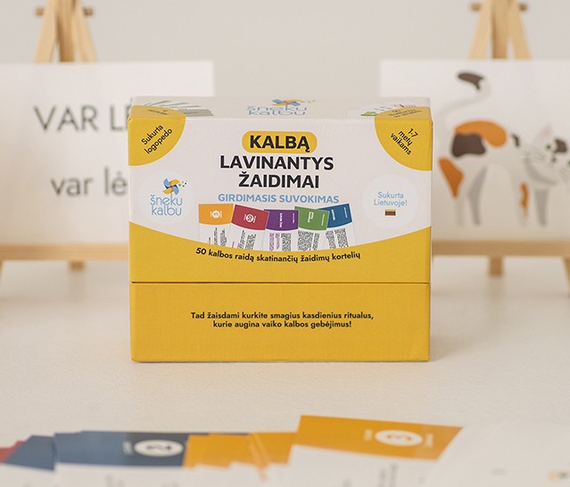 „Šneku kalbu“ kalbą lavinančių žaidimų rinkinyje rasite daugiau nei 50 žaidimų, kurie moko girdėti, suprasti ir kalbėti.