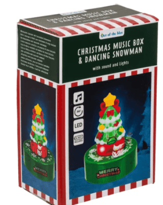 Kalėdinės eglutės muzikinė dėžutė su šokančiu sniego seniu – groja, šviečia ir juda.