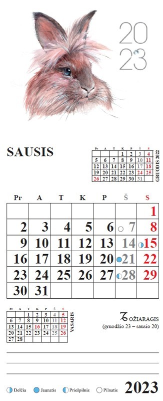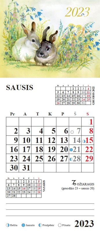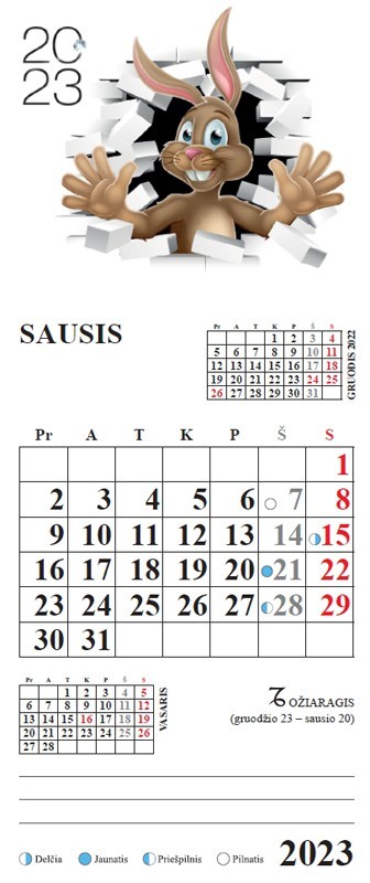 Kalendoriaus nuotrauka-piešinys parenkamas atsitiktinai.