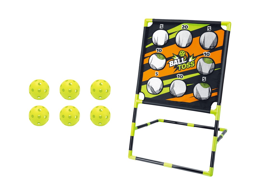 Su šiuo smagiu kamuoliukų mėtymo žaidimu linksmybėms nėra ribų! Rinkinyje yra 6 spalvoti 7 cm kamuoliukai, puikiai tinkantys žaidimams tiek namuose, tiek lauke. Šis rinkinys puikiai tiks vakarėliams arba tiesiog aktyviai lavinančiai veiklai. Surinktos prekės matmenys - 100x60x63.5 cm.