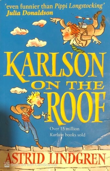 When Midge looks out of his window, he hears a faint buzzing sound and sees Karlson, a little fat man, flying slowly past with a propellor on his back. Midge learns that he lives on the roof and has all kinds of interesting ideas and tricks. Karlson also features in "Karlson Flies Again".