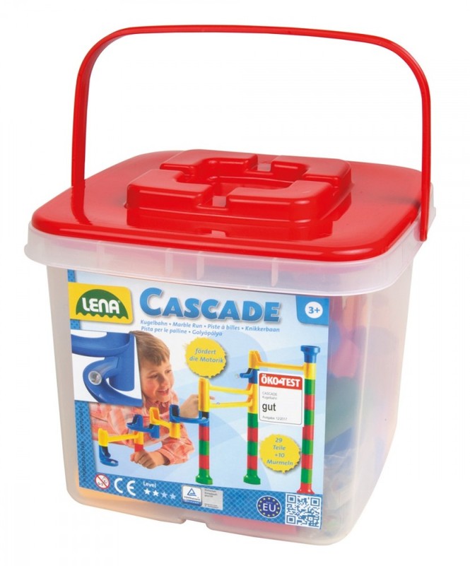 Spalvinga kaskadų sistema plastikinėje dėžutėje su rankena. Galite kurti kaskadų trasas ir paleisti kamuoliuką, stebėdami, kaip jis juda per trasą ir jos skirtingus lygius. Įdomi pramoga mažiems statybininkams. 29 elementai. Lena – tai patvarūs plastikiniai žaislai, ypač populiarūs smėlio dėžėse, statybvietėse ir kieme. Dideli sunkvežimiai, ekskavatoriai ir smėlio formelės pagaminti iš aukštos kokybės plastmasės, užtikrinančios ilgaamžiškumą.