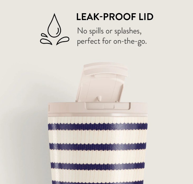 Atlenkiamas dangtelis puikiai tinka karštiems gėrimams, nes apsaugo nuo išsiliejimo.
