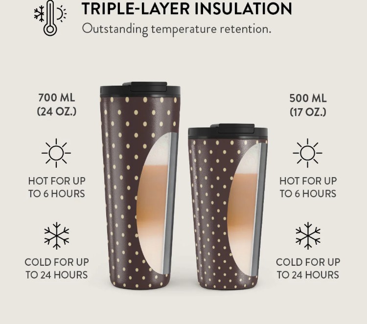 Temperatūros reguliavimas: išlaiko gėrimus karštus 6 valandas, šaltus 24 valandas.