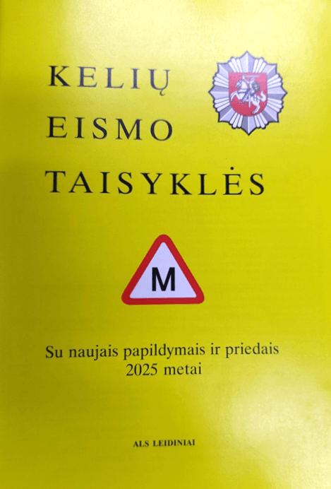 2025 metų kelių eismo taisyklės su naujais papildymais ir priedais.
