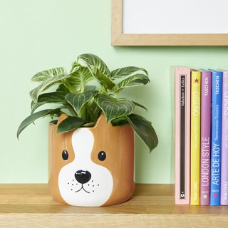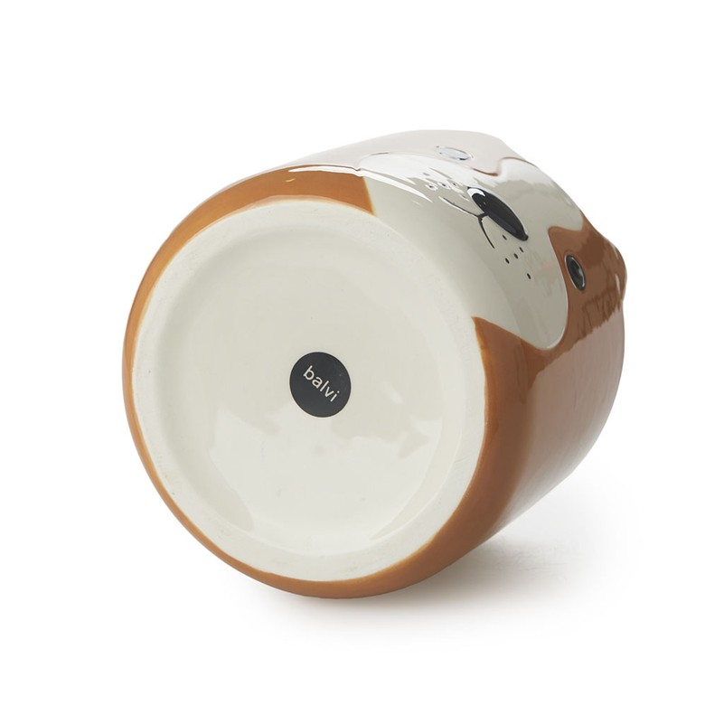 Balvi augalų vazonas „Woof“, rudos spalvos, su šuns raštu, keramikinis.