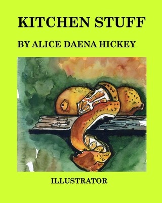 An illustrated book by AIice Daena Hickey all about kitchen stuff .designed for the kitchen illustrated in watercolor, illustrator artist, =author, exhibiting across the globe.,