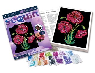 „Kitfix“ rinkiniai su blizgučiais atveria kelią į kūrybos ir amatų pasaulį! „Sequin Art“ – tai įtraukianti ir kūrybiškumą skatinanti veikla, kurios metu iš mažų blizgančių disko formos karoliukų kuriami ryškūs ir unikalūs paveikslėliai. Ši veikla patiks tiek mažiems, tiek dideliems nepaisant turimų įgūdžių. Blizgučių dėliojimas – tai nesudėtingas ir atpalaiduojantis procesas, kurio rezultatai – stulbinantys. „Sequin Art“ violetinė kolekcija – tai patrauklaus dizaino rinkiniai, skirti suaugusiesiems ir labiau patyrusiems vaikams, pereinantiems iš raudonosios į sudėtingiausią – mėlynąją – kolekciją. Parink blizgučiams atitinkamos spalvos taškeliais pažymėtas vietas, pritvirtink juos smeigtukais ir susikurk išskirtinį meno kūrinį!