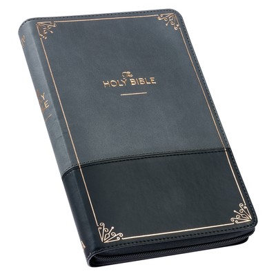 KJV Deluxe Gift Bible Two-Tone Black/Gray with Zipper Faux Leather
