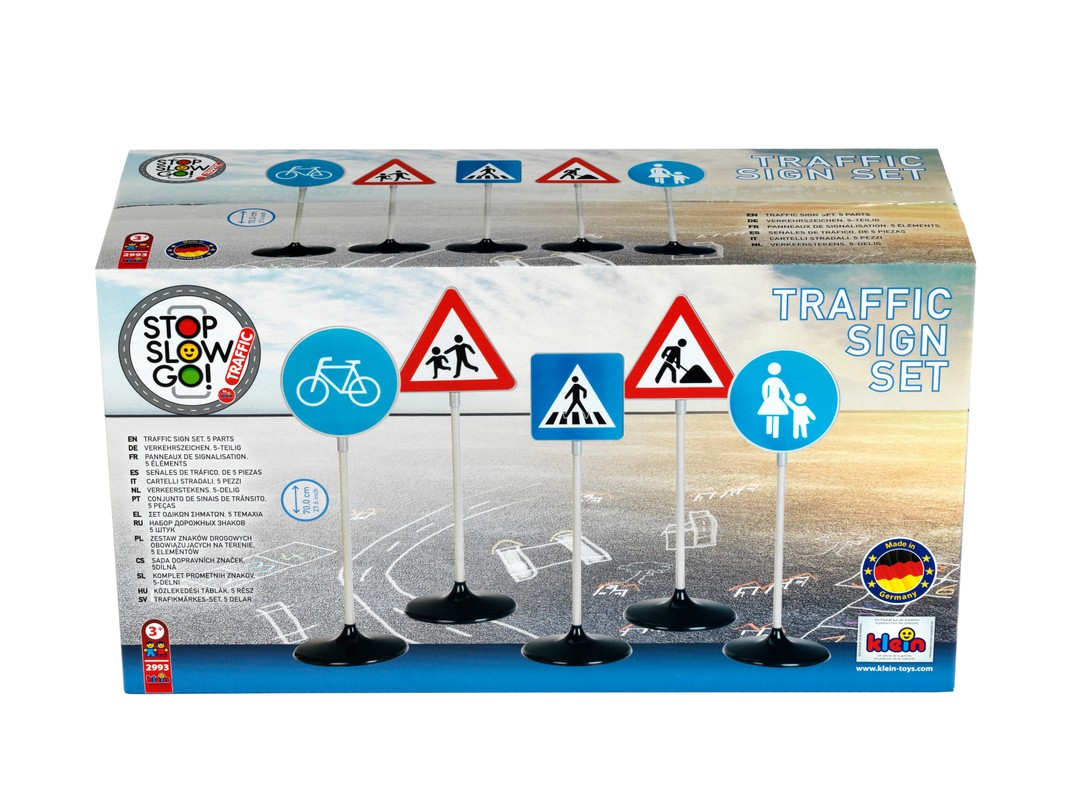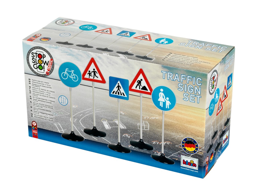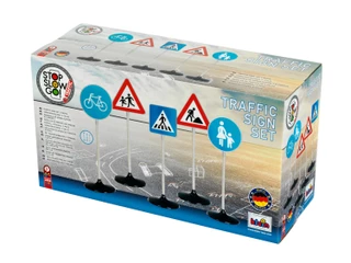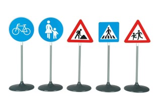 Šis rinkinys puikiai tiks mokytis svarbiausių kelių eismo taisyklių ir kelio ženklų. Rinkinyje yra dviračių takus, šaligatvius, pėsčiųjų perėjas, statybvietes ir vaikų žaidimų aikšteles žymintys kelio ženklai. Kelio ženklai yra 70 cm aukščio, atrodo tikroviškai ir puikiai tinka kelių eismo taisyklių mokymuisi nuo pat mažų dienų.