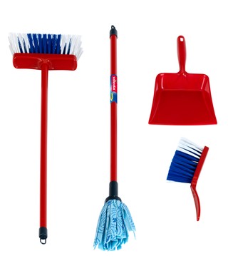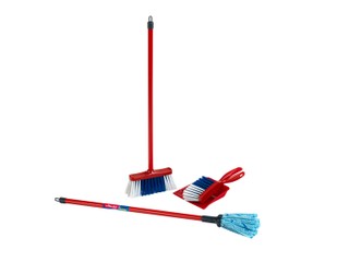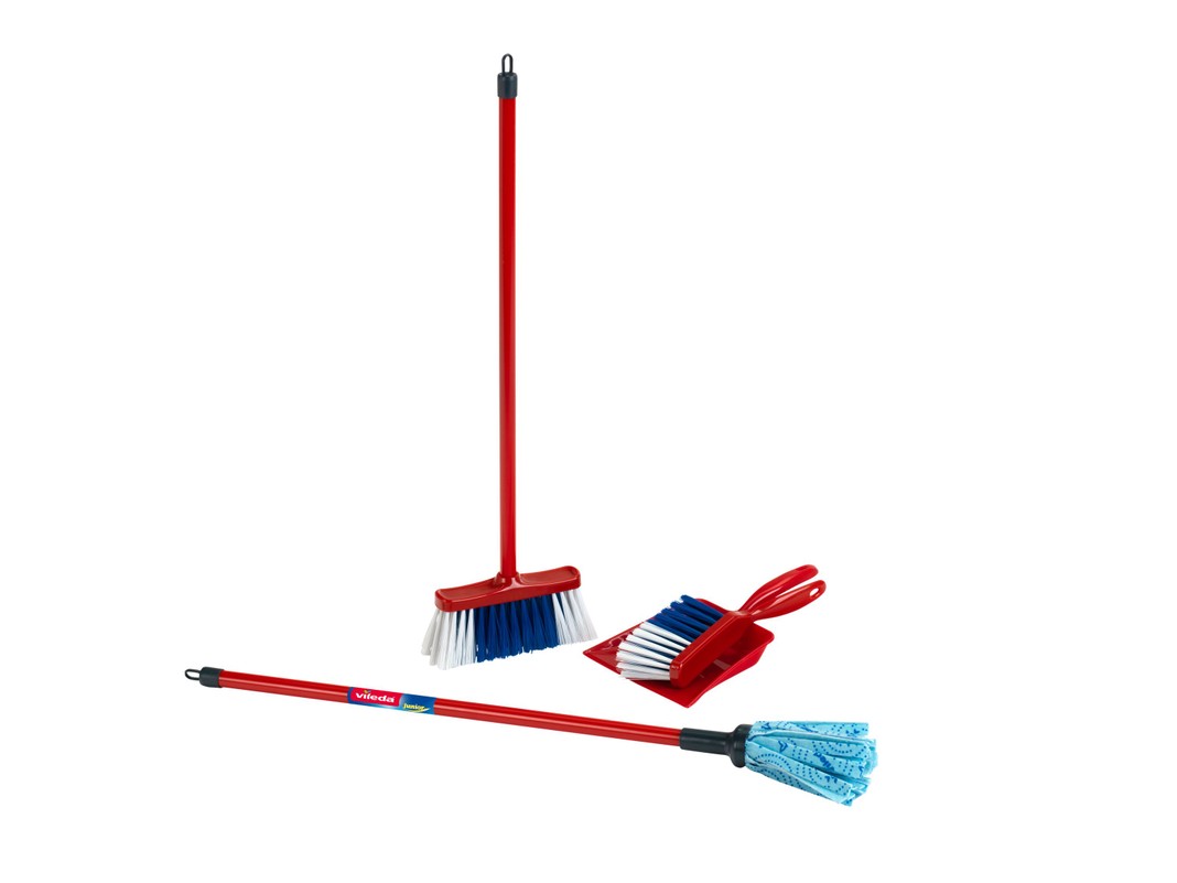 Su tikroviškų VILEDA šepečių rinkiniu tvarkyti namus – vienas malonumas! Rinkinyje yra šepetys grindims šluoti (55,5 cm), šepetys grindims plauti (62 cm) ir mažas šepetėlis su semtuvėliu. Rekomenduojama vaikams nuo 3 metų. Pagaminta Vokietijoje.